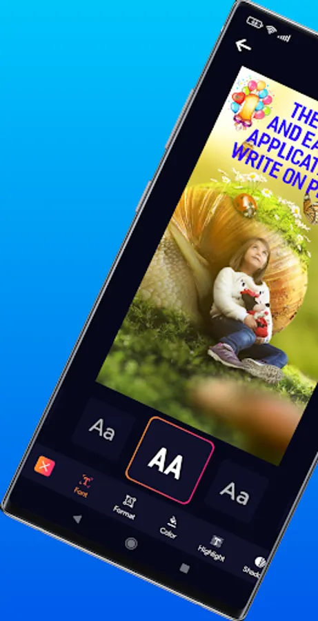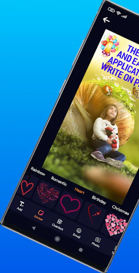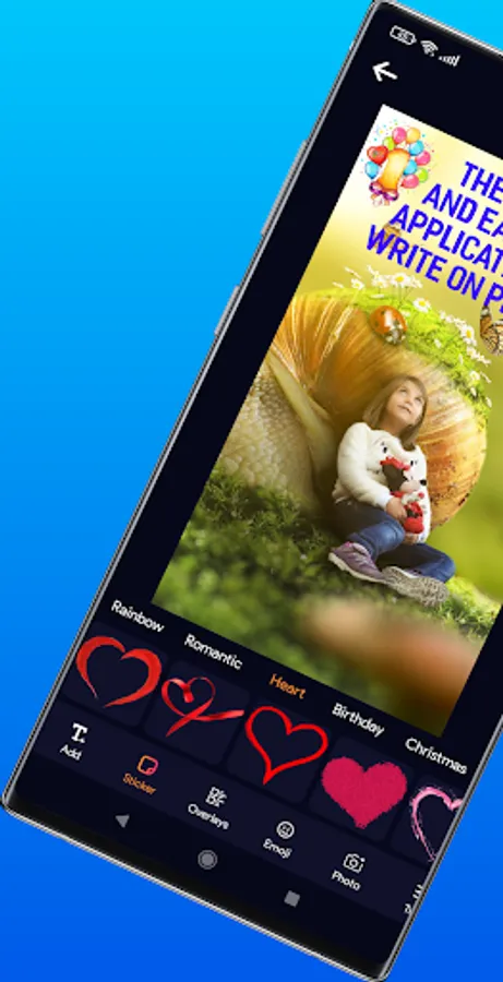 text on pohto Editor is constantly being updated to meet users' maximum needs. Now you can use our Text On Photo app to create meaningful images and keep up with the new trends. Write text over photos and create a great TextArt.