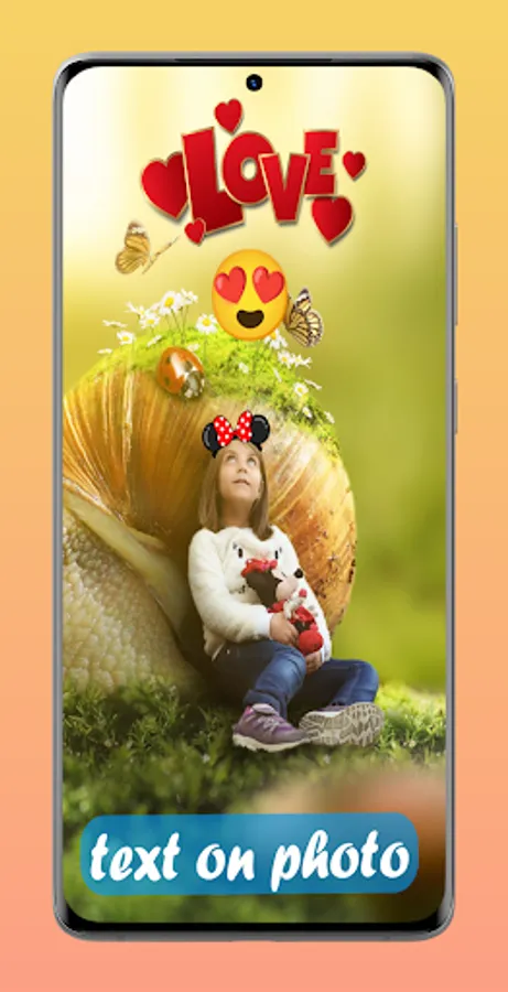 You will create a text on photo editor with text art, text to photo, add text on photo with a 80 + font style or beautiful text on photo with style on hand effect.