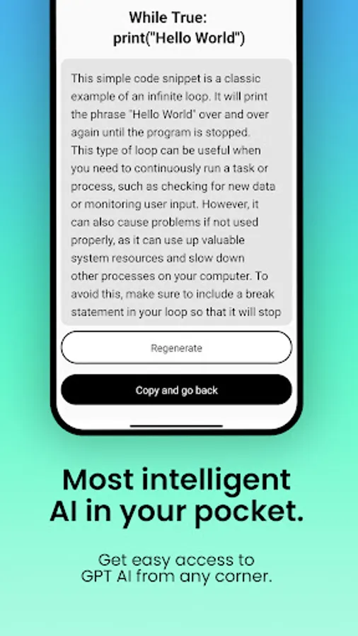Access Chat GPT from any app on your device and get instant responses to your prompts.
