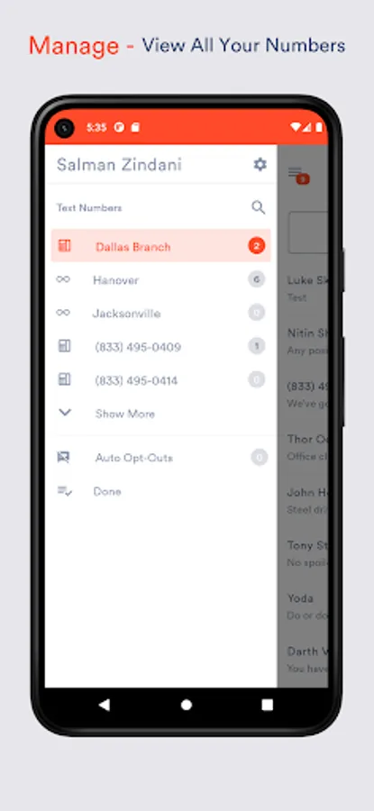 📱 View Multiple Numbers - Accounts with multiple text numbers can easily hop between them to manage messages.