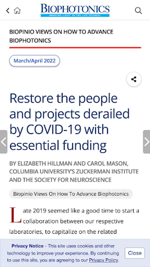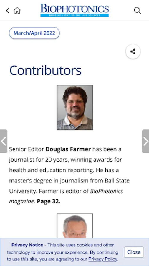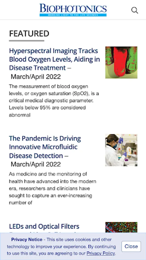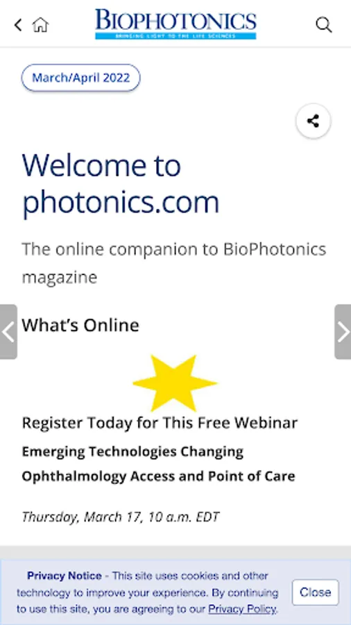 BioPhotonics, the world's leading magazine covering light and the life sciences, is also available as a mobile app. Features include the ability to: