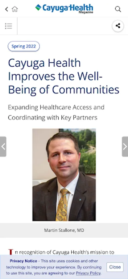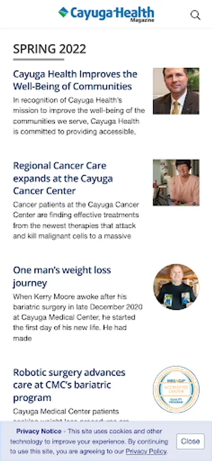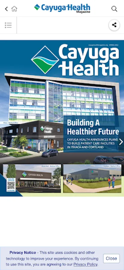 Cayuga Health Magazine, a bi-annual publication for Cayuga Medical Center and Schuyler Hospital, provides our region with the latest information and advancements for the health system. The magazine gives us the opportunity to demonstrate our commitment to comprehensive local care, expanding services, and improving our community. Health and wellness are the core elements of a strong community. The Cayuga Health System is committed to leading the way in supporting the well-being, vitality, creativity, and productivity of the people we care most about: you.