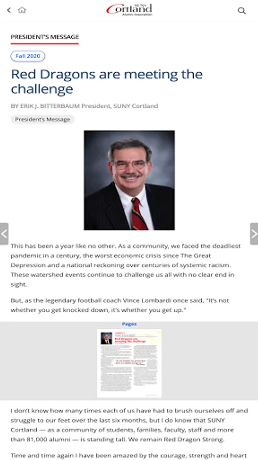 Columns, the bi-annual magazine published by the SUNY Cortland Alumni Association, provides graduates with information ranging from current events to alumni accomplishments and ways to be involved. The magazine has created a community of its own, dedicated to connecting all of our alumni to one another. Columns sets the high bar for practicing alumni engagement; offering insight into the contributions, culture and intellect of the SUNY Cortland community.