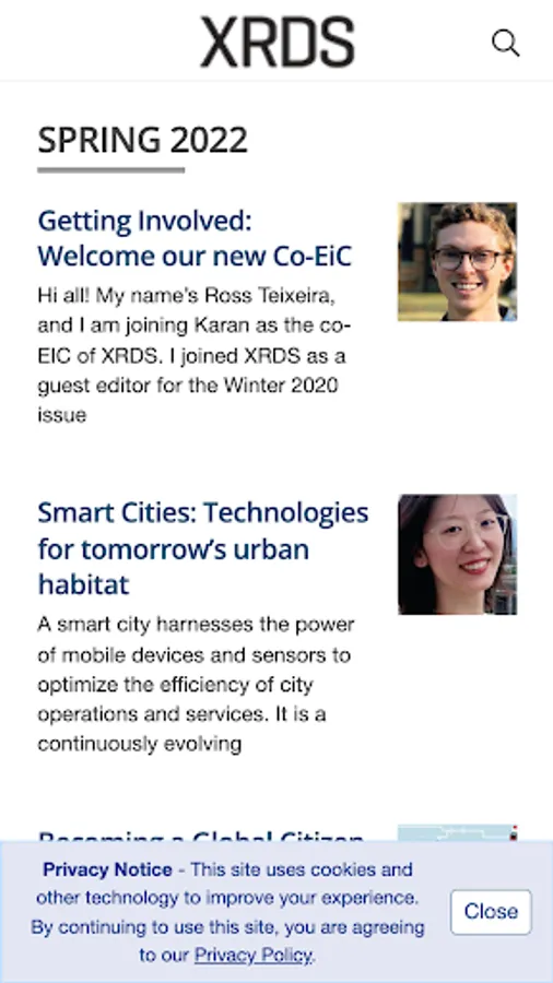 Established in 1994 and published quarterly, XRDS is the official ACM magazine for student members. Each issue features a theme, such as "CS in Service of Democracy" or "Big Data," and XRDS delivers exciting research trends, interviews, student chapter highlights, and career advice relevant to computer science students. The publication also lists major conferences, calls for papers, grants and fellowships, and other useful information to help students make the most of their educational careers.