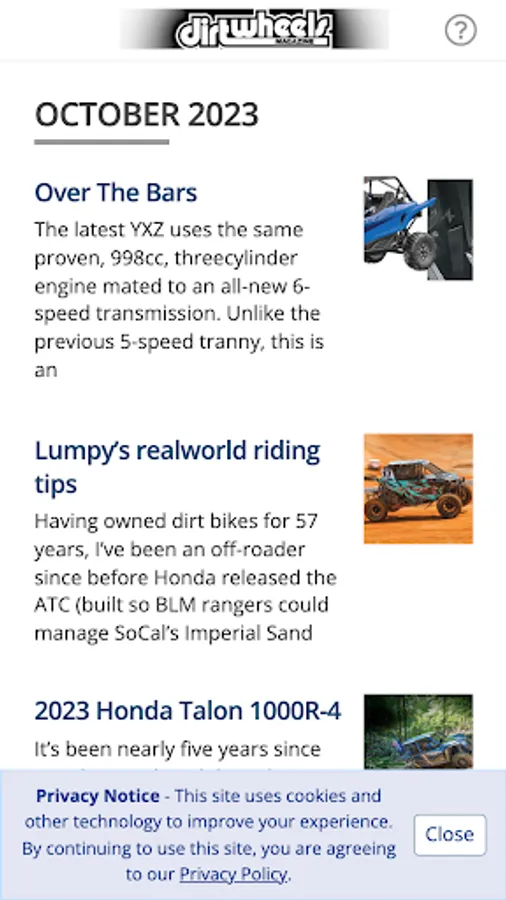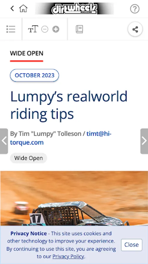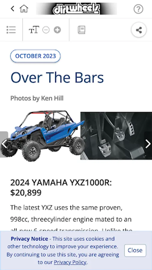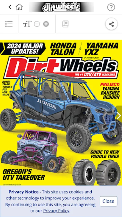 The Number-One ATV magazine for over 35 years, DIRT WHEELS brings you everything in the off-road ATV and UTV world. Each monthly issue is packed with full-on riding and racing tests and reviews of the latest ATVs and UTVs. We test every hop-up part and accessory under the sun to make your rig faster and perform better. Our pros give you riding tips on how to handle different types of terrain, from sand to woods to mud to desert, plus we'll tell you where the greatest riding areas on the planet are located, along with coverage of the best ATV/UTV festivals/jamborees. And you'll get how-tos on everything from tire changes to complete engine rebuilds. This App lets you buy current and past issues (which are available within the App) and download it to your device. Issues purchased in the App have enhanced features, including special video coverage, plus links to all manufacturers' websites. 12 issues (one year) for $8.99. Download single copies for $2.99 each. The subscription will include the current issue if you do not already own it.