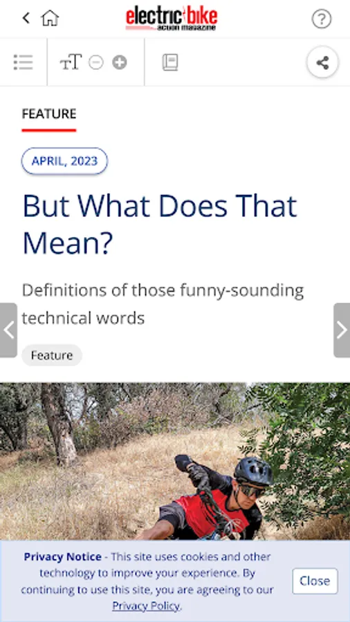 Electric Bike Action magazine covers the fast-growing world of e-Bikes. From Electric Mountain Bikes to Road and Commuter Bikes, plus both On and Off-road Electric Motorcycles, EBA tests and reviews e-Bikes and cycling products from around the world to give you the latest and best choices for YOU. From the editors of Mountain Bike Action, Road Bike Action and Dirt Bike magazine, EBA offers a unique perspective on these new e-Bikes that comes from years of experience ride-testing (and race-testing) the best equipment available in those fields. We get into the tech behind what makes e-Bikes tick, and we’ll tell you what works and what doesn’t. Whether you’re looking for a hot e-Mountain Bike for the trail, an e-Motorcycle with 100+ mile range, or an e-Bike to cruise to work or ride on the weekends, EBA gives you the information that no other source can. Download the free App to access EBA. Download issues for only $2.99 each, or subscribe for 6 issues (one year) for only $8.99. The sub will include the current issue if you do not already own it.