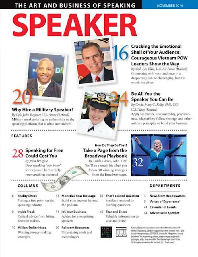 Look and listen to the award-winning Speaker magazine and Voices of Experience (VOE) audio series on one convenient and simple application for anyone with an iPhone, iPad, Kindle, Android mobile device, etc. Speaker magazine brings you the latest and greatest news and trends in the speaking profession via content-rich features articles and columns with hard-hitting, hands-on information for building a speaking business. VOE contains exciting interviews with successful speakers who share their experiences, strategies and secrets for building their brand and their bottom lines. Designed for professional speakers and those who aspire to a speaking career, app users will benefit from relevant information on topics like presentation skills, business operations, ethics, marketing, branding, social media and speaking internationally.
