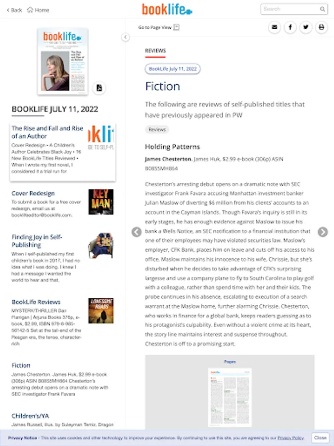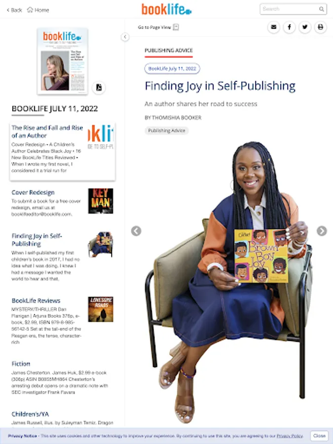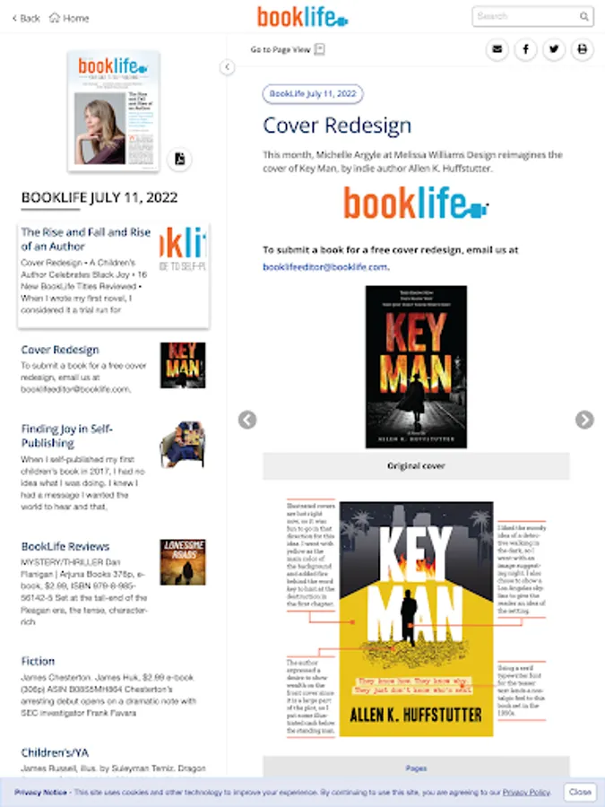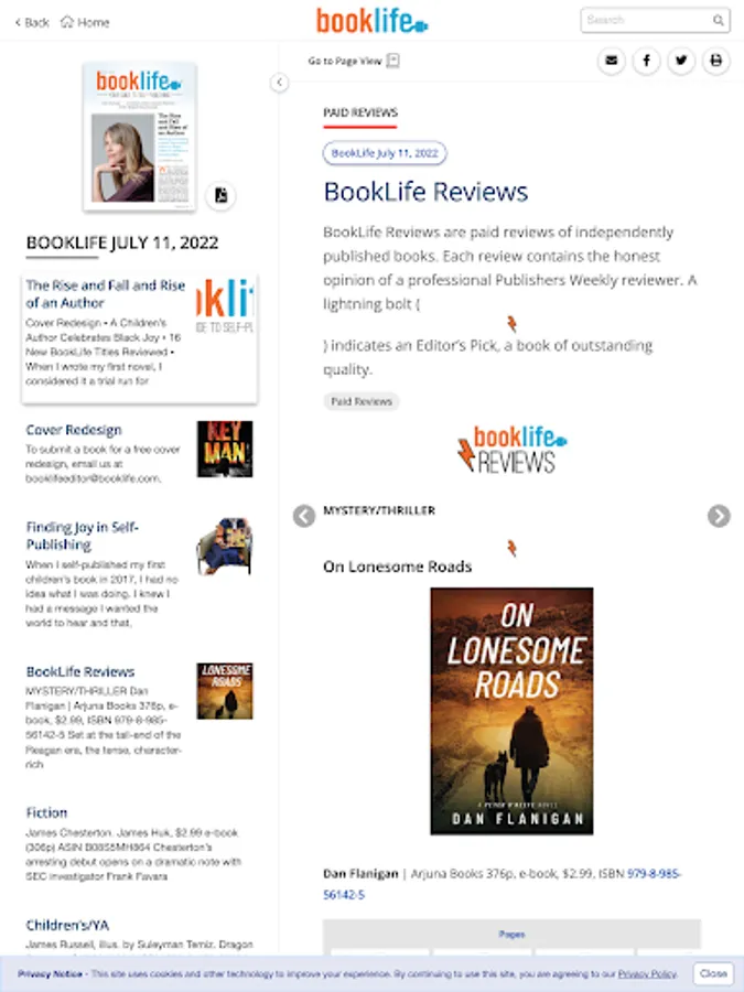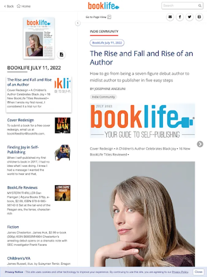Every month, Publishers Weekly publishes BookLife, a supplement dedicated to covering the self-publishing industry that features interviews with authors, book announcements and listings, news, features, analysis, book reviews, and more.
