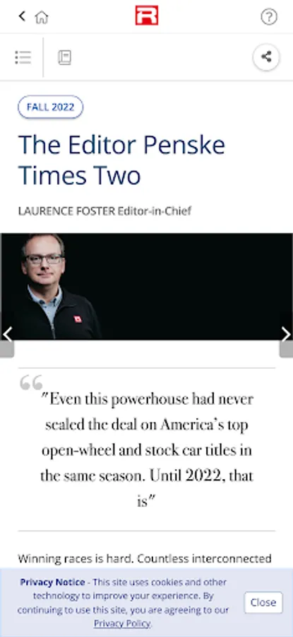 RACER is a premium motorsports publication known for its beautiful images and timeless stories. RACER’s mission is to create compelling high-quality content that reflects the full spectrum of racing’s vibrant culture and passionate way of life. It’s a magazine that takes readers behind the scenes of the sport with an authentic voice that conveys the values, beliefs and competitive mindset of those who create global racing on a daily basis.