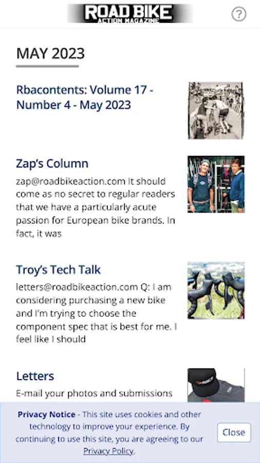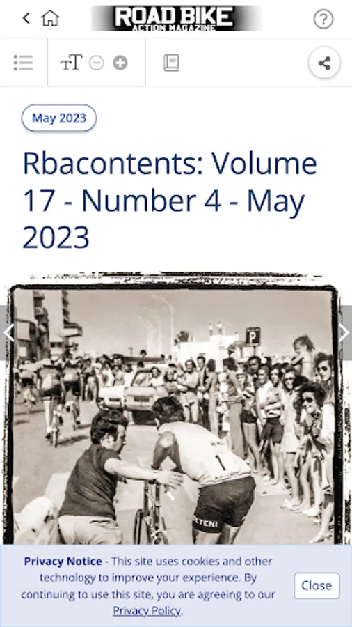 Road Bike Action is the world's number-one selling road cycling title. We cover the entire sport, race-testing all the new bikes, and the parts and accessories. We tell you what's working on the road. We'll give you training tips from the pros for all ability levels, plus how-to's and maintenance tips, travel, fitness, nutrition, and exclusive International race coverage and perspective you won't find anywhere else, including the Tour de France. With Road Bike Action, you'll know what's hot in the cycling world. This App gives you the mobile flexibility to review and purchase current and past issues (which are available within the App) and download it to your device. Each issue purchased in the App has enhanced coverage, special video coverage on races, products, and additional features, including links to all manufacturers' websites 10 issues (one year) for $8.99. Download the current issue, or back issues for $2.99 each. The subscription will include the current issue if do not already own it.