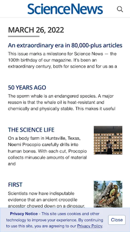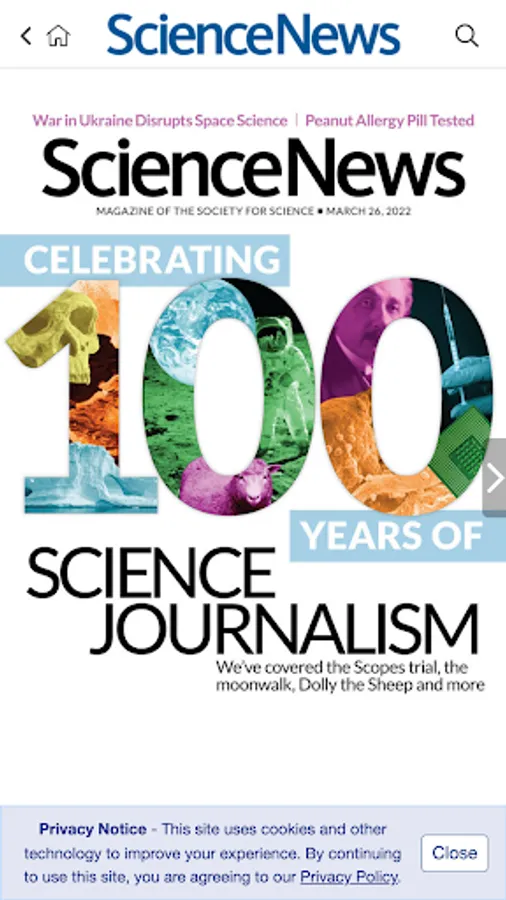 The Science News Magazine app includes the biweekly magazine and real-time news updates from all disciplines of science — from astronomy and physics to biomedicine, neuroscience, genetics, early humans, climate, ecology, animals, environment and more.