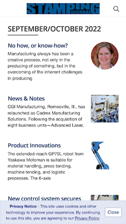 Take a look at some of the areas covered by STAMPING Journal: