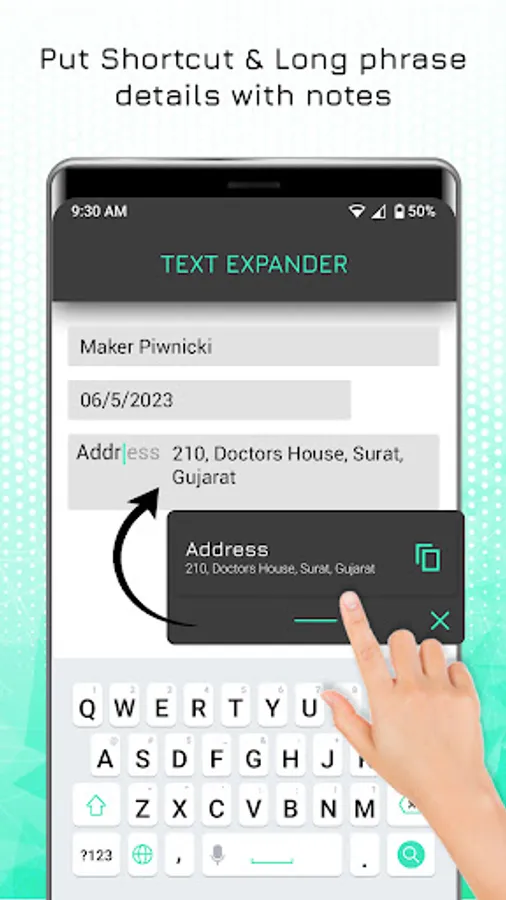For Example: Whenever you fill in any details where you need your details like full address, number, pin code number and etc. Then you will get the whole details with text expander. who is words replaced with short text and expander text is written details with ai text writer.