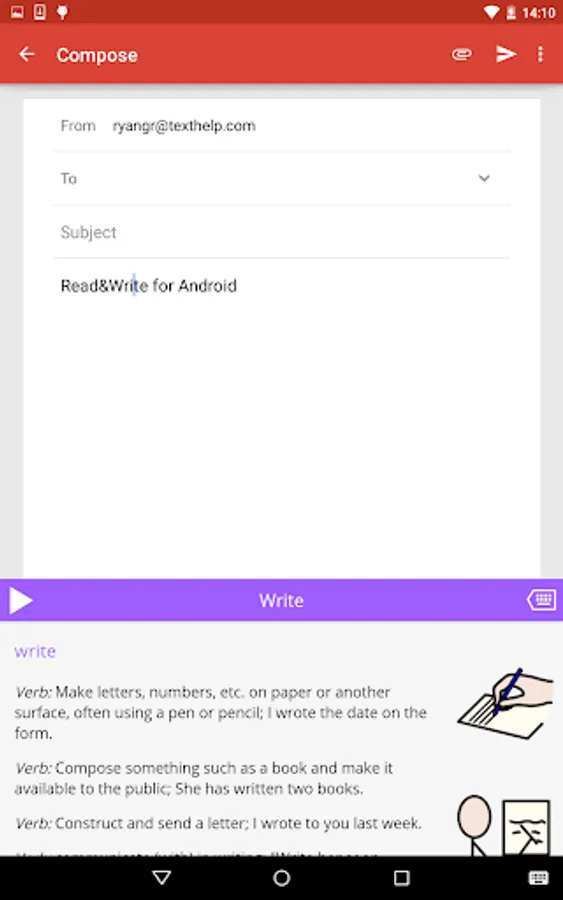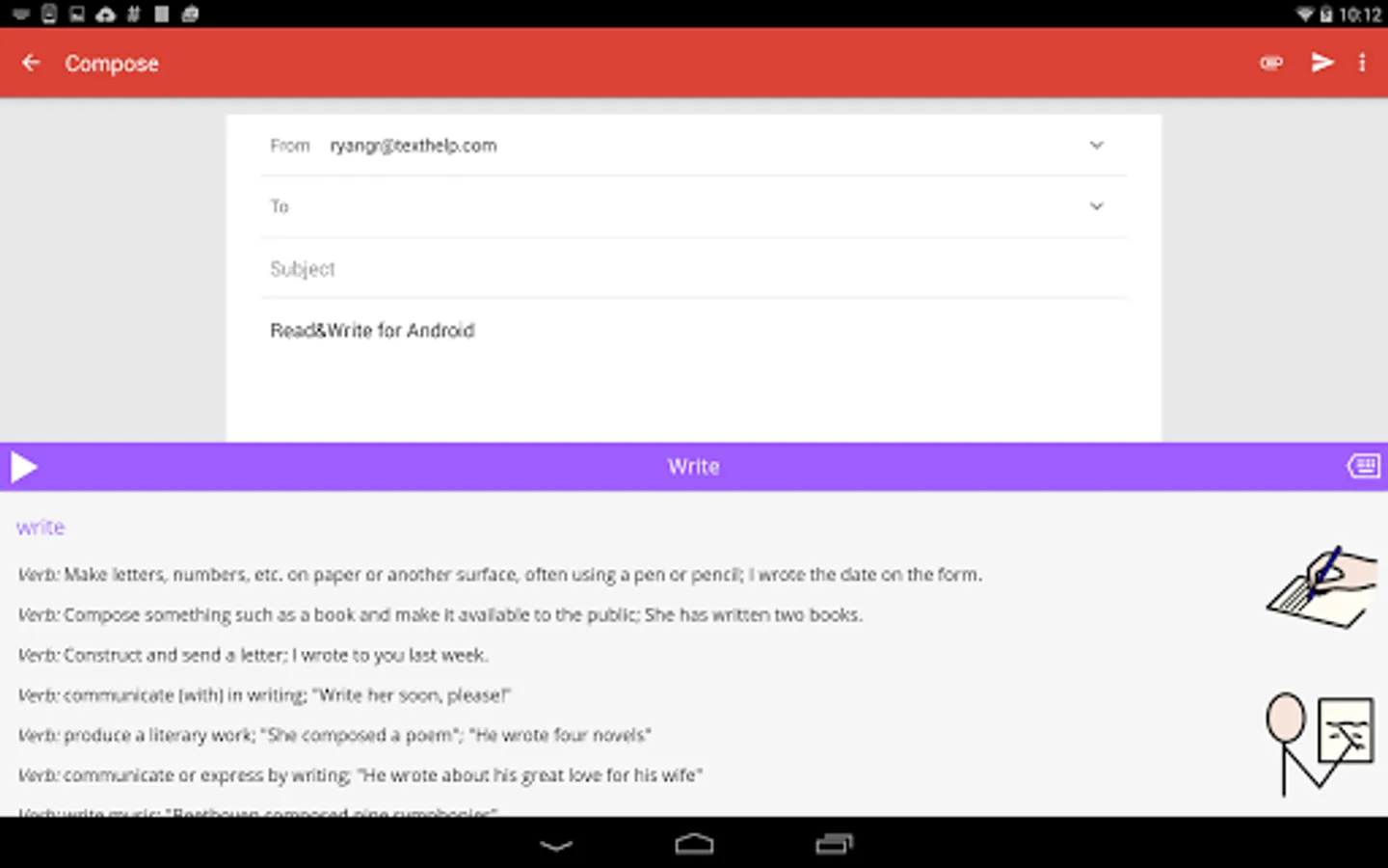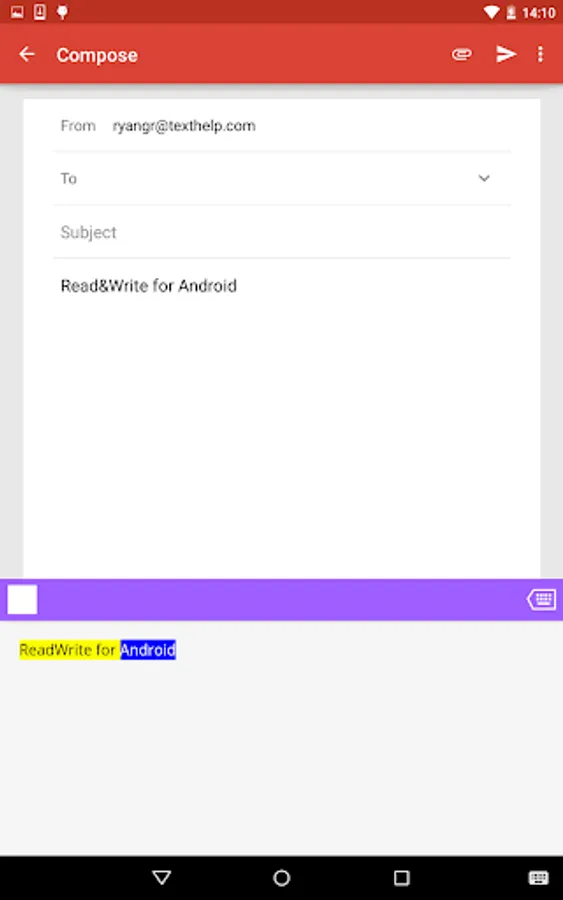 Read&Write for Android is an easy to use alternative keyboard with integrated features to help you with writing content such as emails, social media, or interacting with online forms etc. Specially created for Android tablets, it’s great for anyone who needs a little support with their reading and writing.