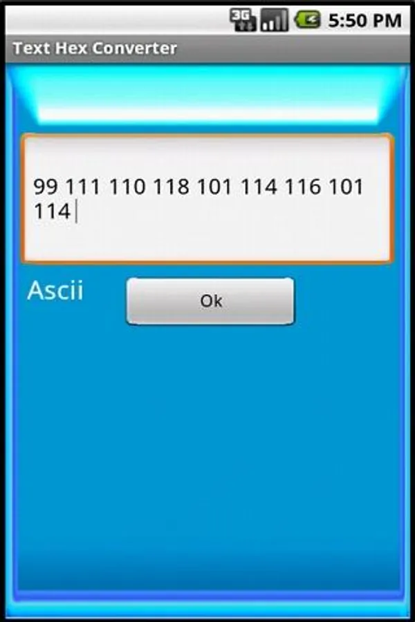 Telefonunuz üzerinden Text-Ascii-Hex-Binary kodlama sistemleri arasında geçiş yapmanıza yarayan bir programdır.