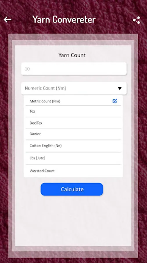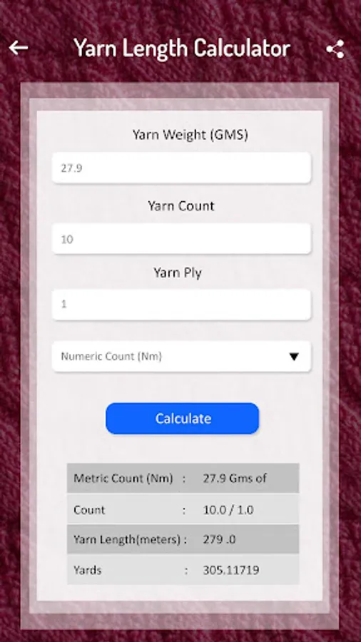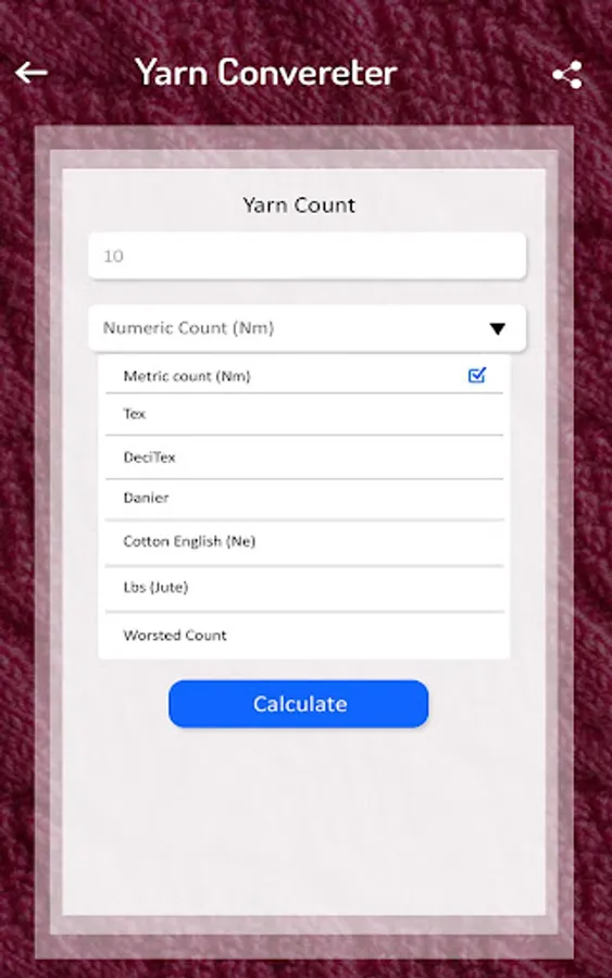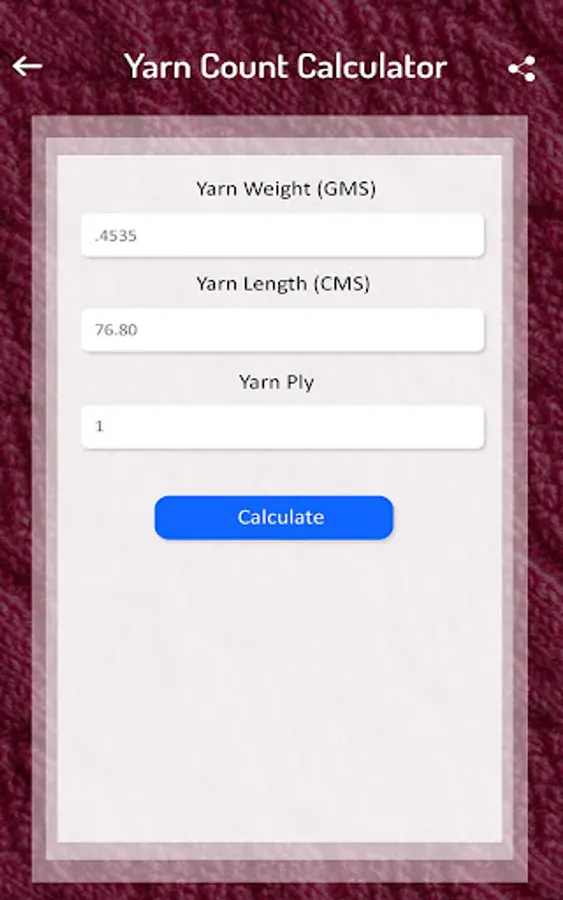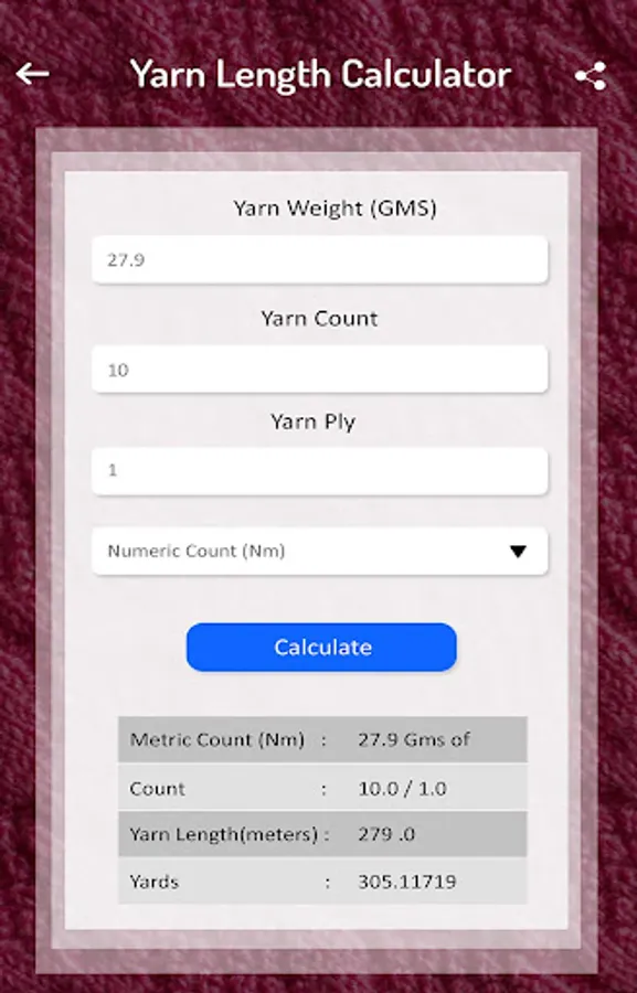 Yarn Calculator : Help you to Find the count of various yarn by taking Weight, Length and Ply of the yarn.