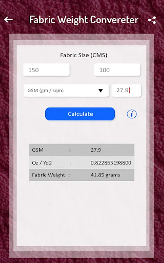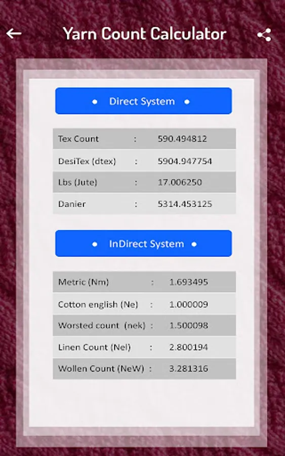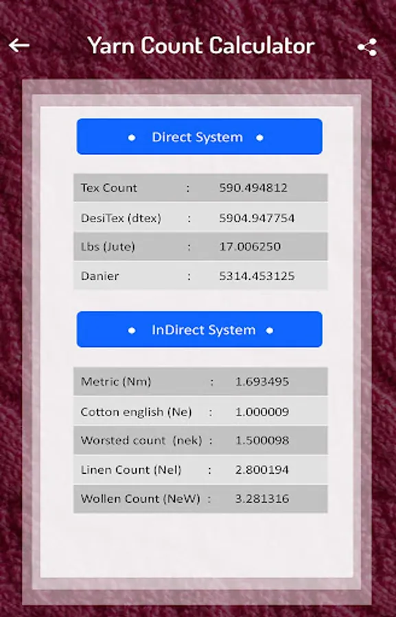 This is a Simple Yarn Count Calculator, Converter, Yarn Length Calculator, Fabric Weight Converter & Fabric GSM Calculator.