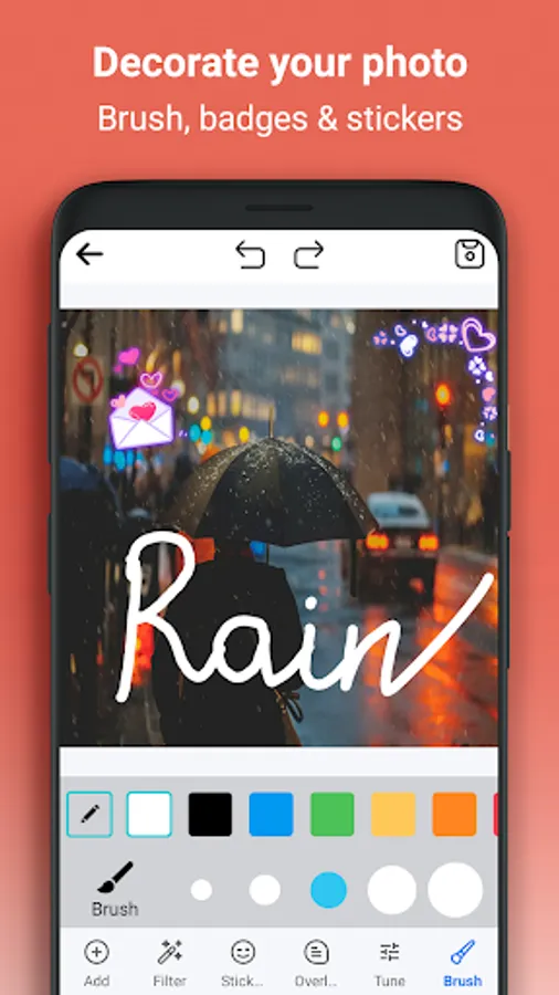 • Awesome Photo Editor: use great photo filters or professional photo editing tools like crop, rotate or flip to edit your photo before write on pictures