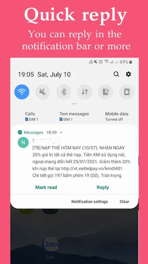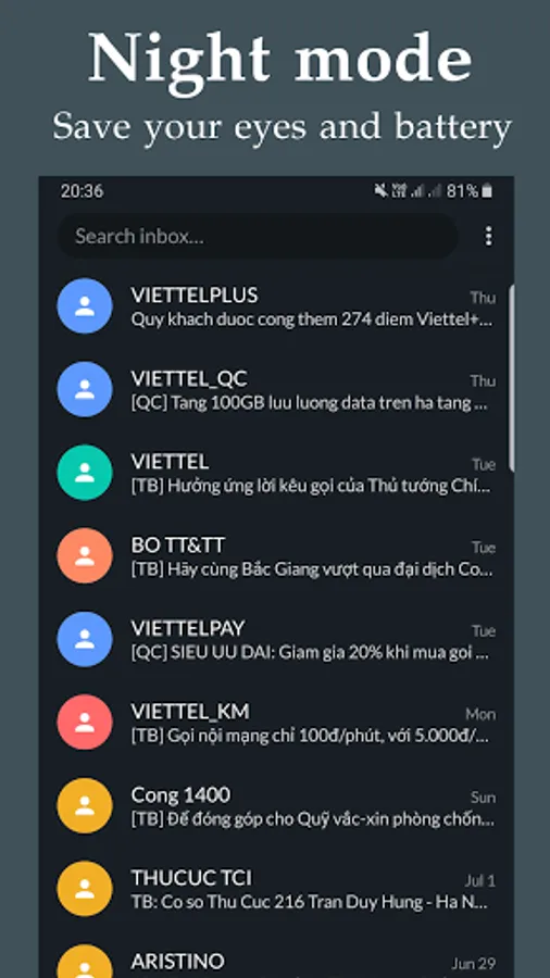 + Fully supports dual sim devices for Android 5.0 and above for both SMS and MMS