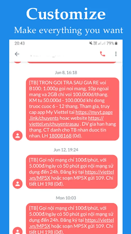 + Customize texting bubble, SMS bubble, color, font & wallpaper