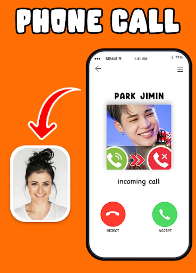 This application fake call prank Jimin not affiliated with anyone. This application not a real call from Jimin only fake video call from Jimin application. If anyone feel to have the right from all of the material in this video call and Jimin application just send us an email and we will unpublish it. Try this Jimin fake call prank apps.
