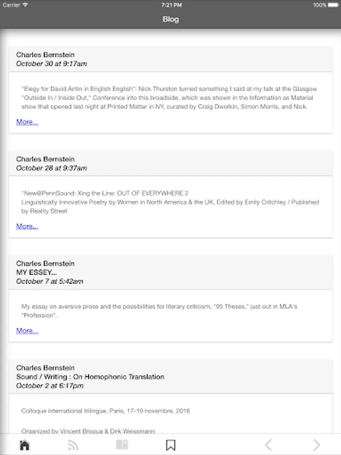Readers will also have an access to the latest news from Charles Bernstein's blog.