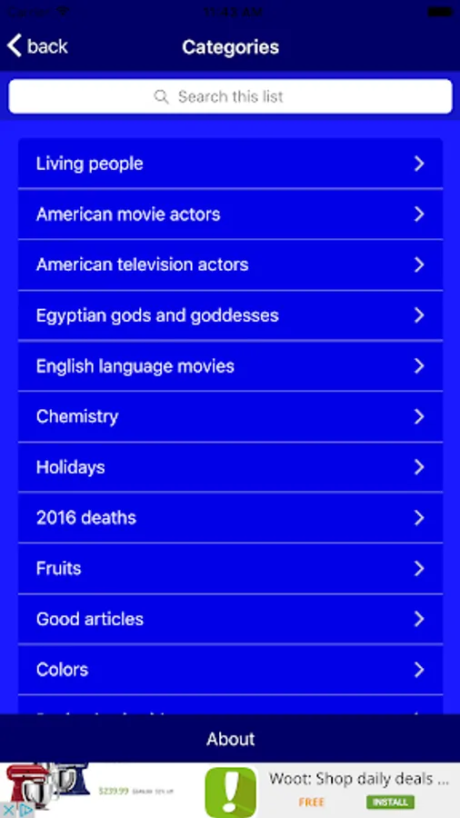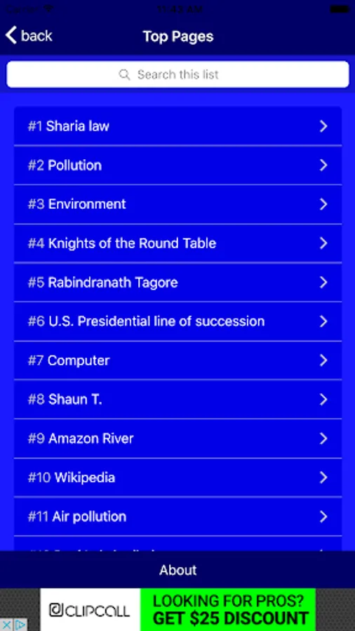 Search function lets you search any article in Simple English Wikipedia.