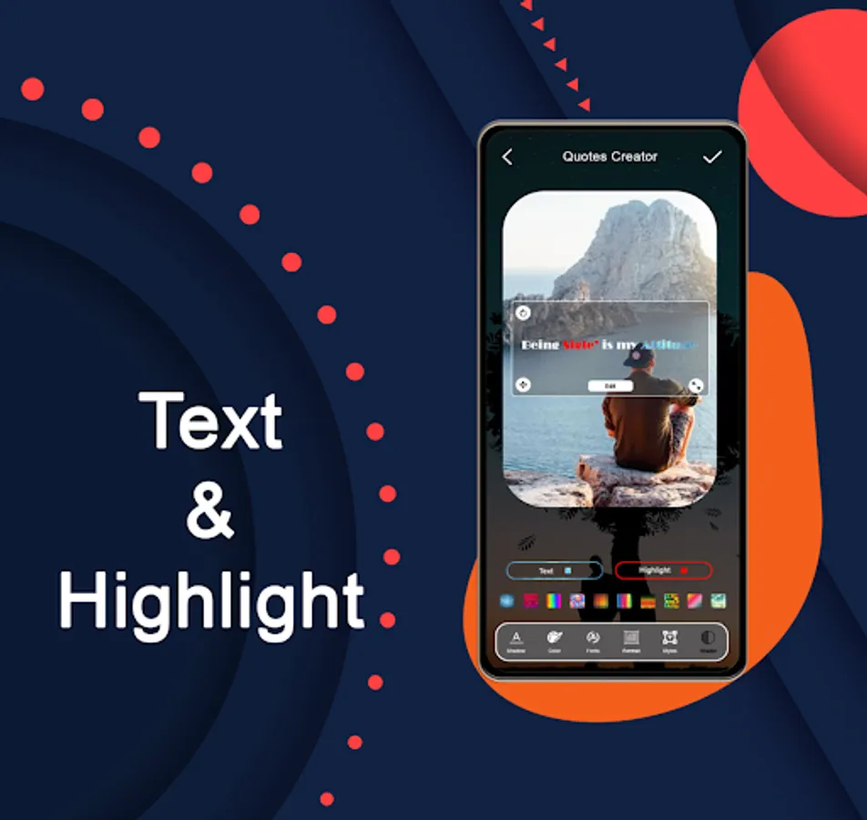 Quotes Creator is the best and easiest way to create and share your quotes with the world. Quotes Creator ready with customizing options such as background, text colors, text size, and fonts, or you can choose your photo from your Photo Gallery to be used as background, so you can share your own quotes with your friends.