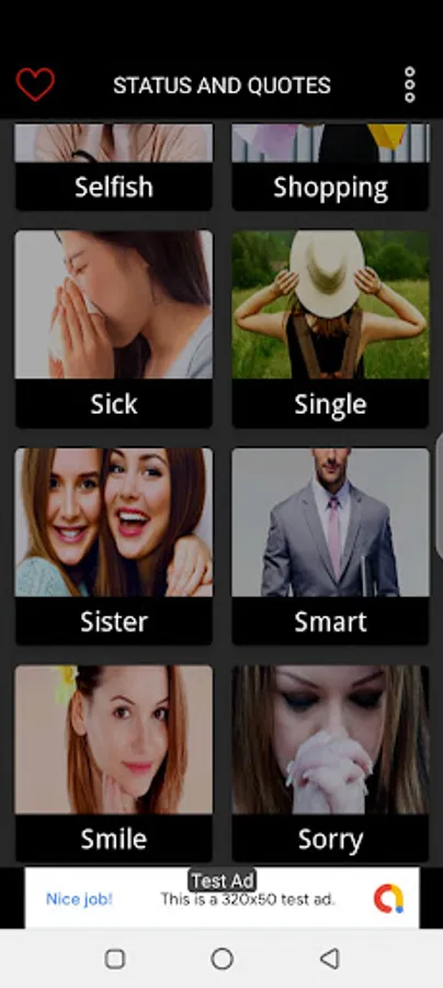 Red Status and Quotes has collection of over 10000+ status and quotes with 100+ categories. So you can find best variety of status and quotes in this android app. We also added new category for different occasion Status and! Latest update also has much new background especially for these occasions like Christmas and New Year!