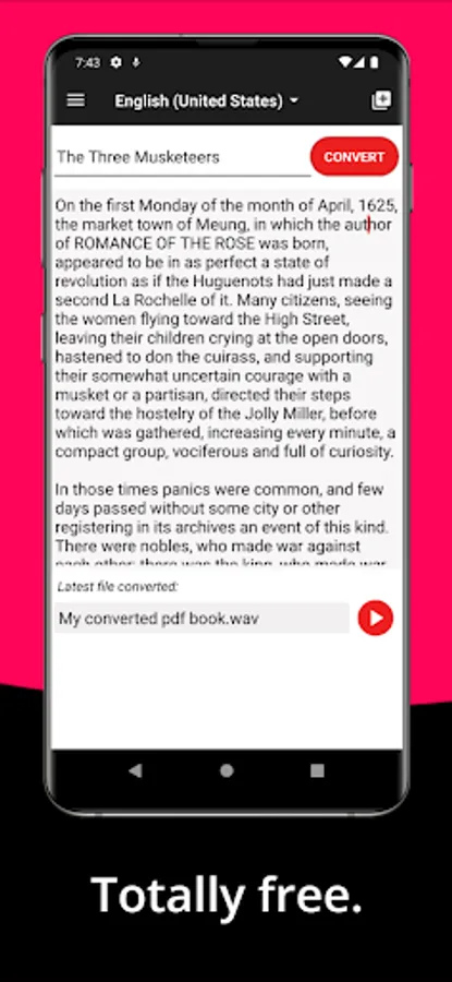 With this app you can convert easly PDF and Plain Text files to audio totally free without characters restriction.