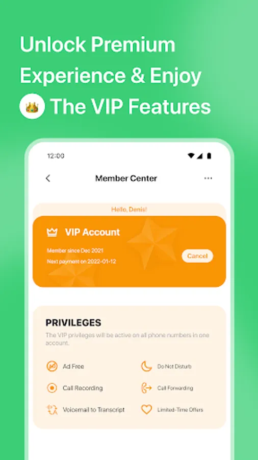 Elevate your communication with affordable membership. Unlock premium features and enjoy high-quality call recording, personalized voicemail greetings, voicemail to text conversion, call forwarding, and affordable international calls or texts.