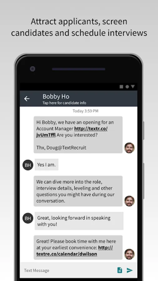 • Send texts to announce job openings and screen candidates
