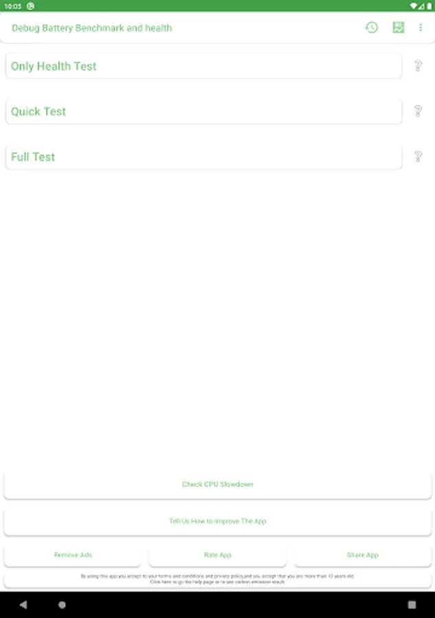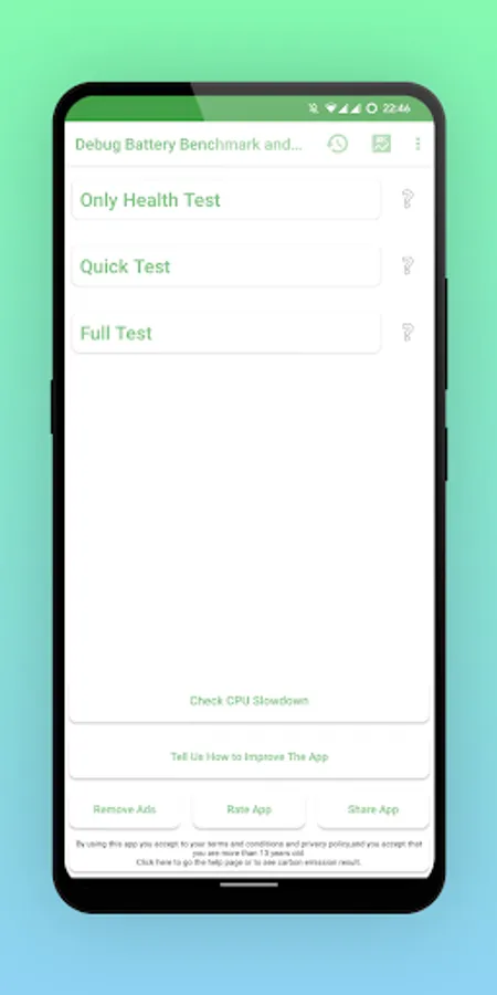 Please note that Battery Benchmark is not a Battery-Saver App. It is designed to assess and optimize your battery and charging performance rather than reduce battery usage.
