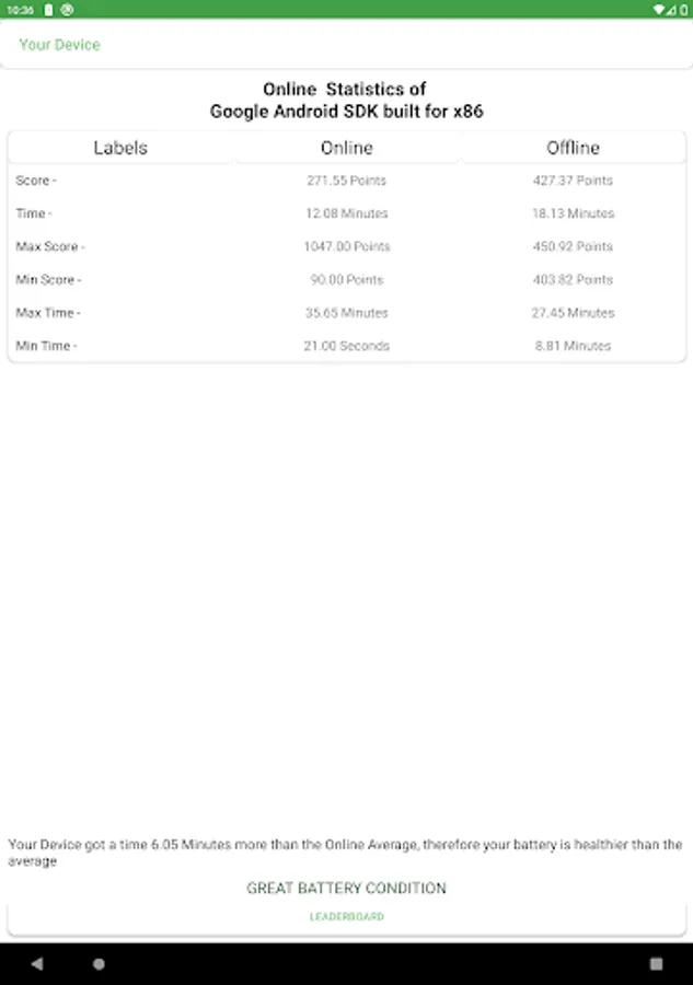 Battery Benchmark doesn't just stop at analysis. It also offers practical tips and recommendations to optimize your battery life. Whether it's adjusting your screen brightness, managing background apps, or fine-tuning your device settings, our app provides actionable advice to help you extend your battery's lifespan.