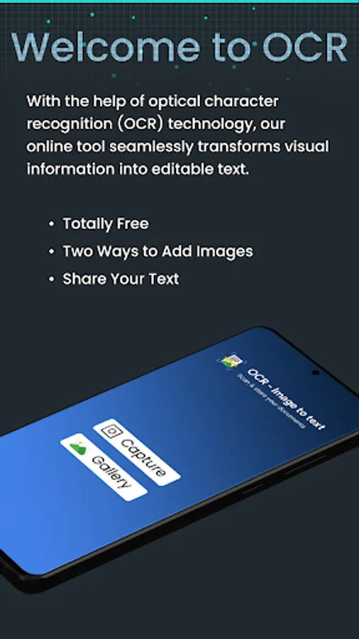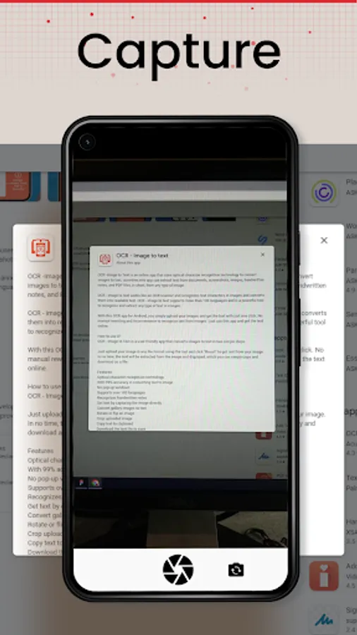 Capture: Scan picture using your device's camera to extract the text. Ideal for on-the-go situations or when you need to convert a physical document instantly.