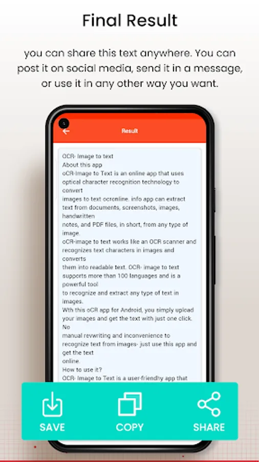 After this text scanner app turns your image into text, you can share this text anywhere. You can post it on social media, send it in a message, or use it in any other way you want. This feature makes it easy to share information from images with others.