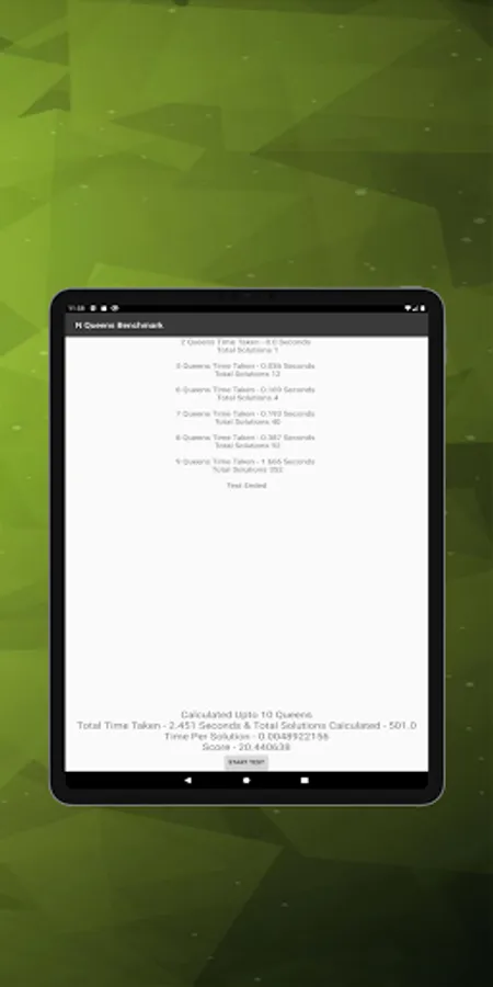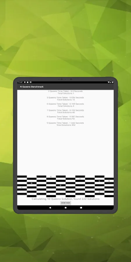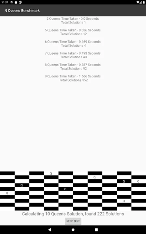 This App will help you calculate the NQueens benchmark of your phone by doing the N-Queens Test in a Visual way.