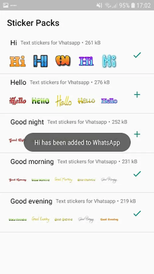 send text like "HI", "Hello" , "Good Morning" etc in stickers.
