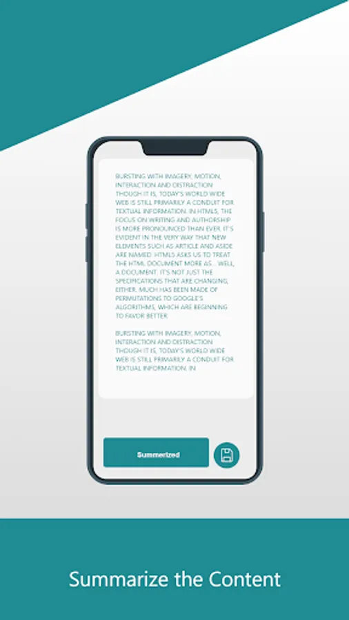 Text Summary app allows the phone user to swiftly grasp essential ideas in the information that was meant to be read on a bigger display. It provides a succinct description that is simple to read and adapted for smartphones and tablets.