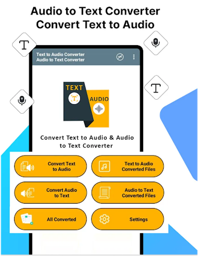 With this nice app Text to Audio Converter app let you convert unlimited text to audio with multiple support audio format in a second. With a lot of features like voice changing, set the volume pitch and rate. Support above then 50+ TTs language. Means you can easily convert text to audio in more than 50 languages.
