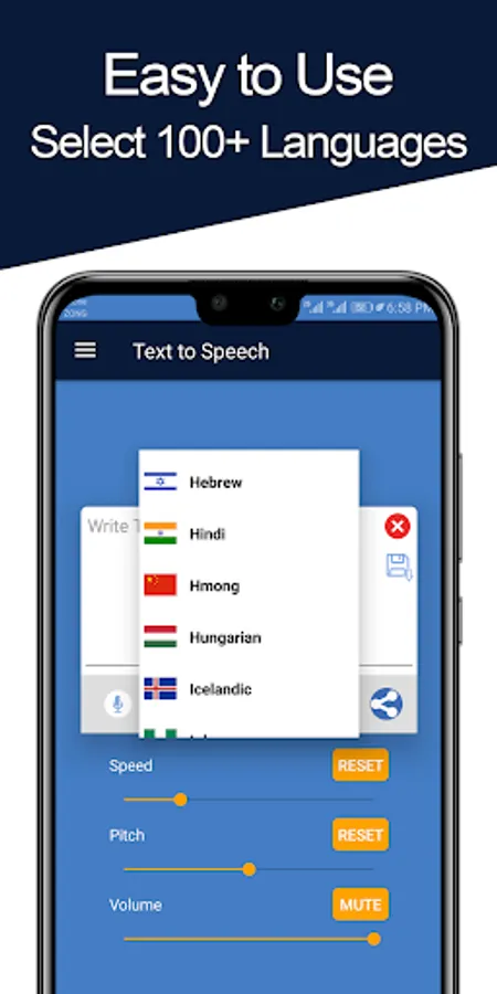 Just download our Text to Speech (tts) app and Start Converting your text to voice notes.