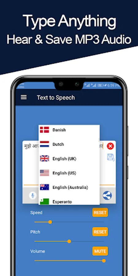 You can adjust speed and pitch of the voice. This app is suitable for all those who do not have time to read all the text in the document. Just paste your text into our app and it will do the rest and convert your text into voice notes. You can save them too for future reference. The best feature of this app is that you can save voice notes of your text files.