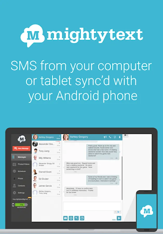 Download MightyText today and start texting from your computer or tablet with ease, whether you're at work, at home, or on the go. Stay connected with the people who matter most, wherever you are.