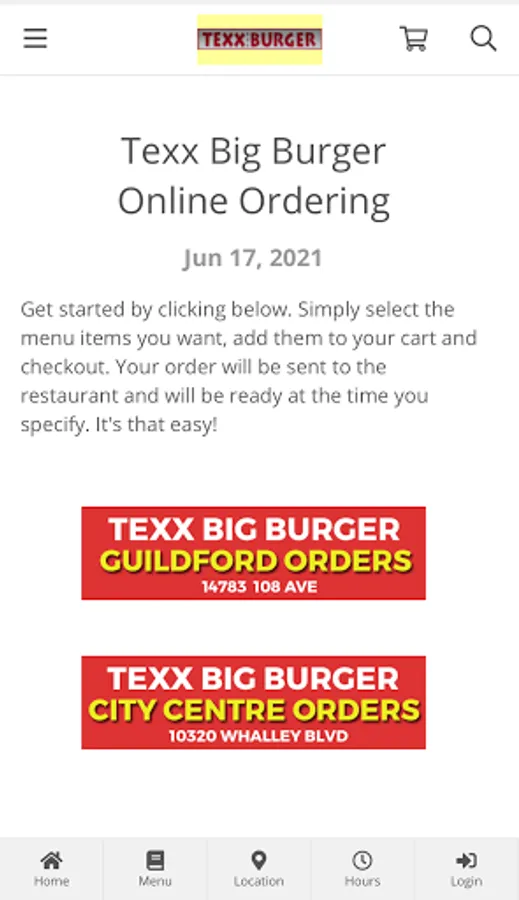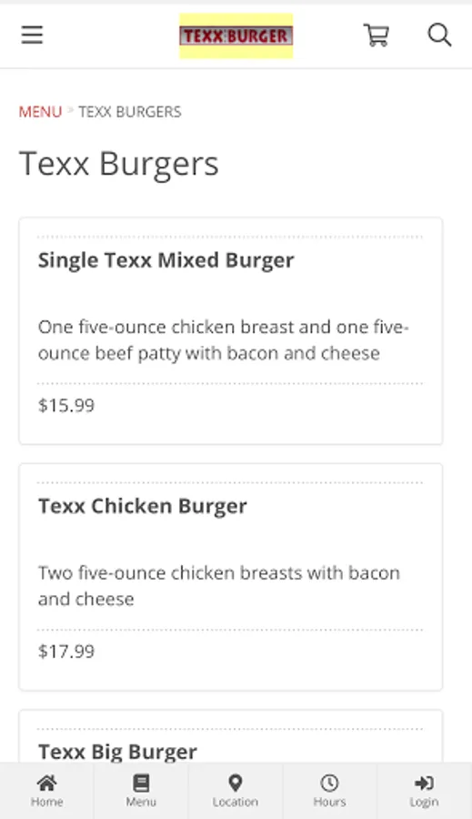 Online ordering for Texx Big Burger in Surrey, BC Canada