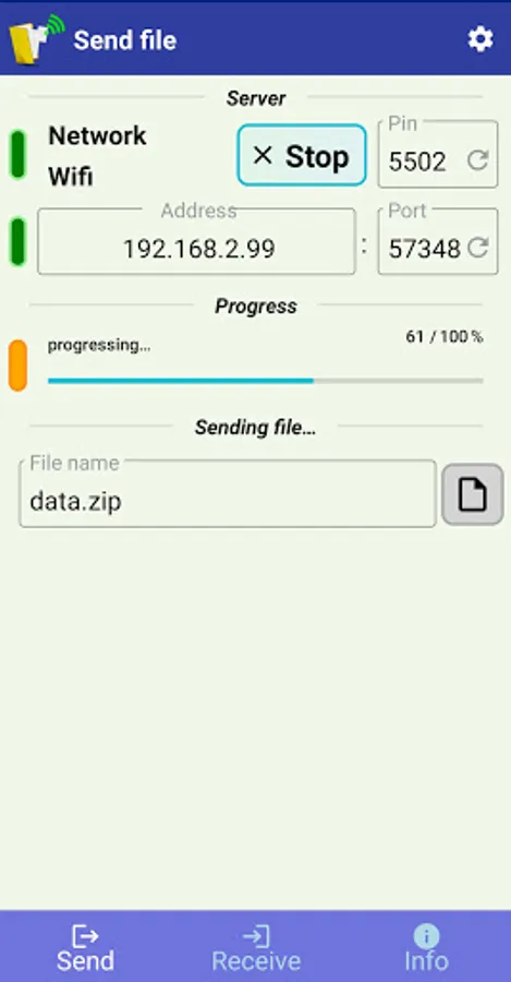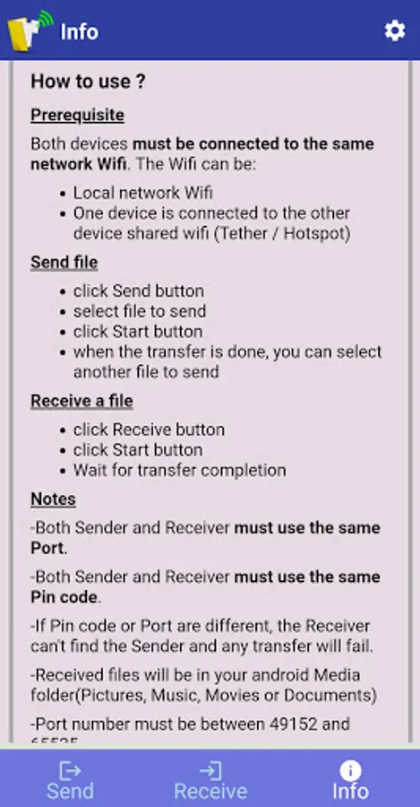 Wifer allow you to transfer files between 2 devices through Wifi with automatic devices discovery.