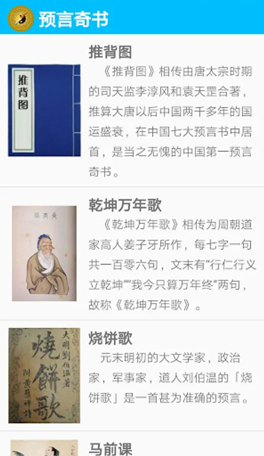 《推背图》相传由唐太宗时期的司天监李淳风和袁天罡合著,推算大唐以后中国两千多年的国运盛衰,在中国七大预言书中居首,是当之无愧的中国第一预言奇书。