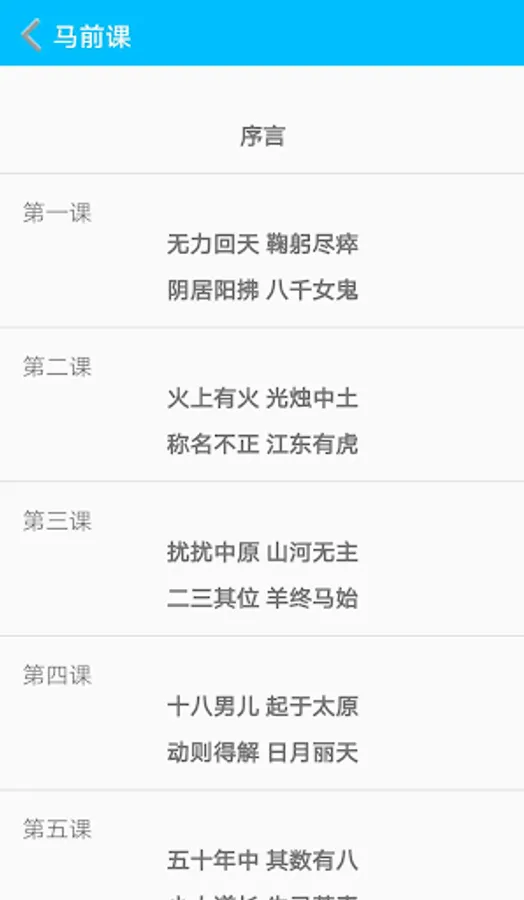 《马前课》相传由三国时期诸葛亮所著,讲述了自三国时期至“大同”社会的各个历史时期的卦象,共十四课。