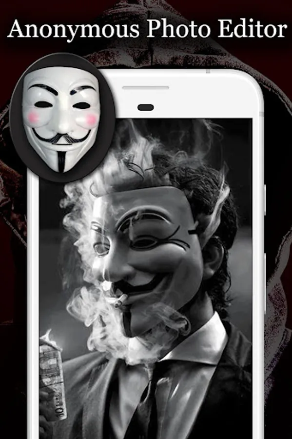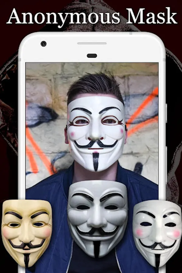 Anonymous Mask Photo Editor Excellent app with which you can hide your face from prying eyes. If you're a fan of Guy Fawkes, the Masquerade Anonymous Mask app is made especially for you!