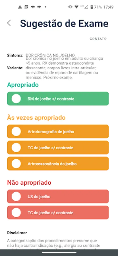 4. That's it, you'll get the result of which imaging modalities are best suited for your patient.