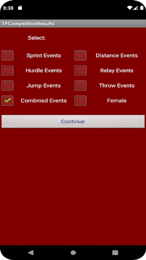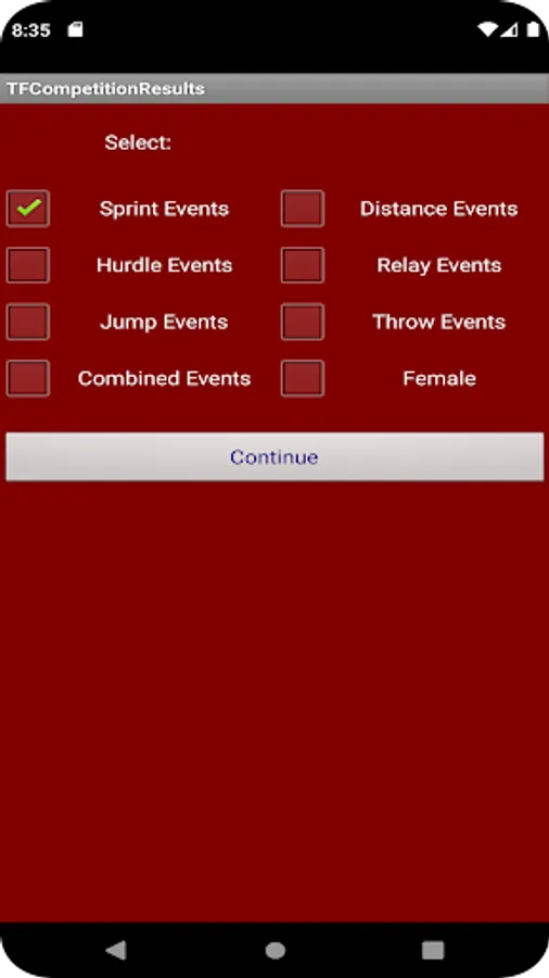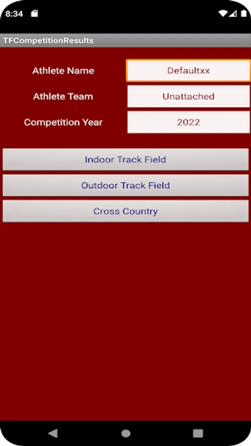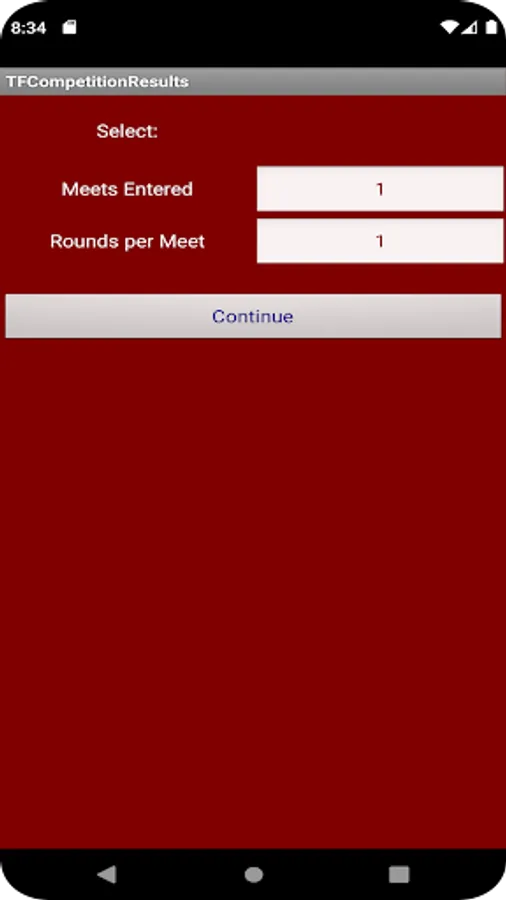 TFCompetitionResults application (Part of TF Series) provides recording of competition results for selected athlete(s). Information entered includes Athlete Name, Team, Competition Year, Competition season, Competitor Events, Number of Meet Entries, and Number of Rounds. It can be used as a Personal Training aid.